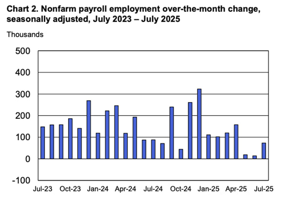 Fast forward to Friday, and we received a major downside surprise in the NFP report. July job gains came in well below expectations, and the prior two months were revised sharply lower.