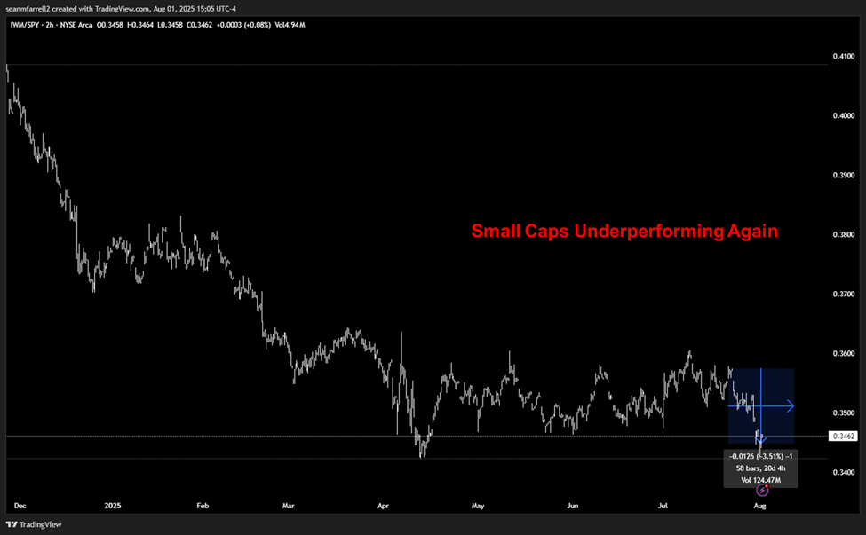 We also saw renewed small-cap underperformance versus large caps, a rotation away from lower quality assets. This type of capital rotation often precedes underperformance in altcoins. Keep this in mind as we walk through our portfolio adjustments later in this note.