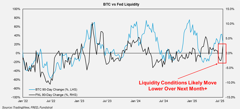 Compounding this, the Treasury’s plan to refill its General Account means liquidity conditions are likely to deteriorate into mid-to-late September, another drag on liquidity-sensitive assets like Bitcoin (see our video from Wednesday on the matter).