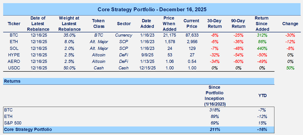 Thank you to everyone who joined my annual outlook call today. Below are several high-level takeaways, along with the latest Core Strategy and Crypto Equity portfolios.