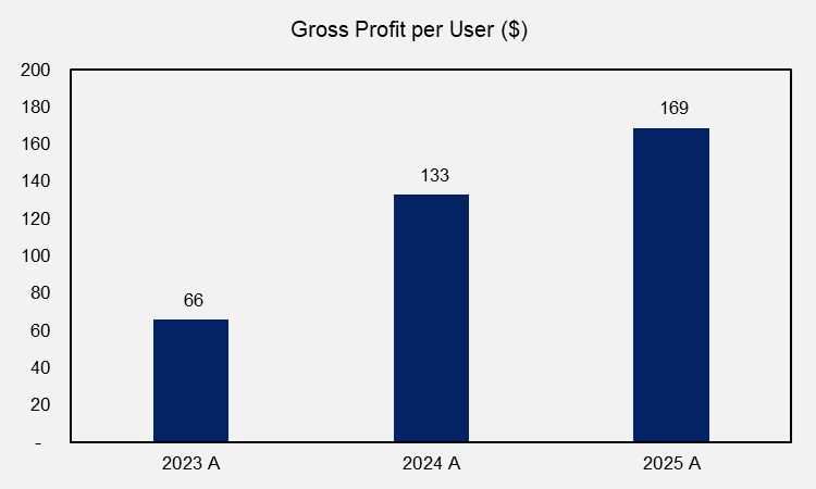 Gross profit margins expanded from 24% in 2024 to 33% in 2025, driven by a more favorable revenue mix. This resulted in 50% gross profit growth in 2025, significantly outpacing the 8% growth in net revenue over the same period.