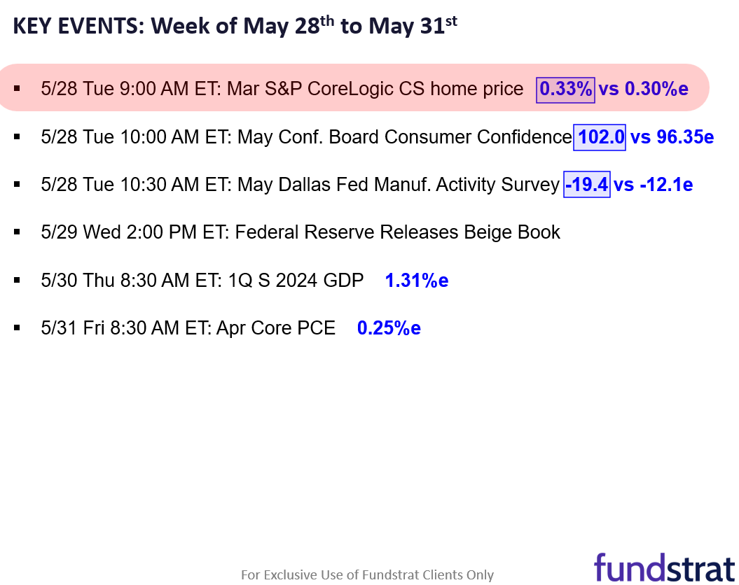 - Beside, the key event this week is April Core PCE which is released on Friday at 8:30am ET. We will have a fuller preview on Thursday, but we expect this to be a below consensus print = good.