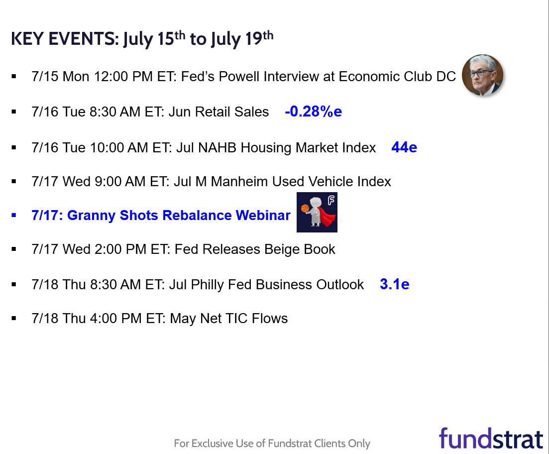 – 7/15 Mon 12:00 PM ET: Fed’s Powell Interview at Economic Club DC