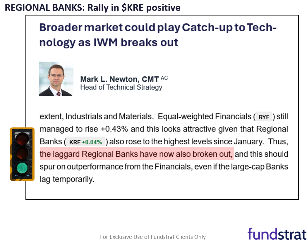 – Recall, small-caps have higher EPS and sales growth vs S&P 500 as well - Suffice it to say, we see the conditions for a strong rally in IWM. And Mark Newton, Head of Technical Strategy, believes a confirming “breakout” of small-caps could happen this week.