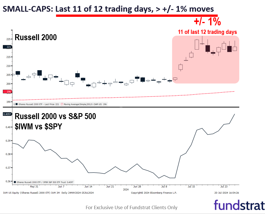 - Mark Newton, Head of Technical Strategy, also noted that there is a significantly improved technical backdrop for small-caps. He notes that convincing breakouts have taken place. And he views this as likely funded by a rotation away from large-cap.