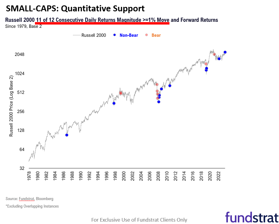 VIDEO: Small-caps just generated a very important quantitative signal, moving >1% in 11 of the last 12 trading sessions. This has only happened at the start of a major advance for IWM -2.98% .