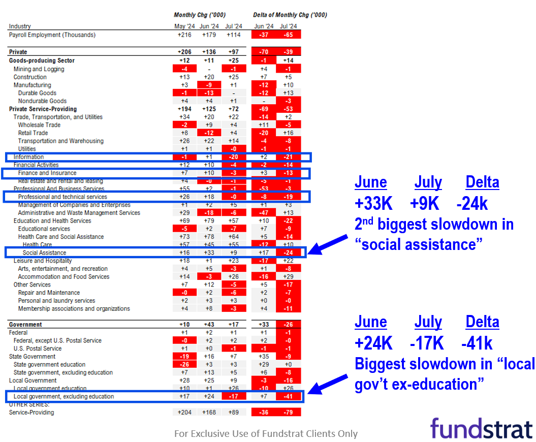 – Social assistance -24K fewer (+33k june, +9k july) - Sure, there were slowdowns in Technology, Finance, etc, but the bulk of the -61k miss is the -65k from just those two jobs categories above.