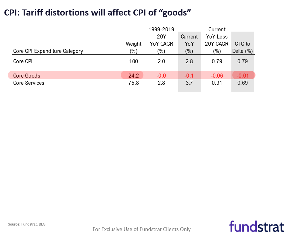 – ex-these two, core CPI is -0.1% YoY below trend, at 1.9% - We believe too many investors are focused on the “speed bumps” of economic data ahead. That is, inflation is picking up due to tariffs. And the supply chain disruptions means we will see economic weakness ripple into the data. But unless this turns into a self-reinforcing downturn with credit contraction, then markets are likely seeing through this.