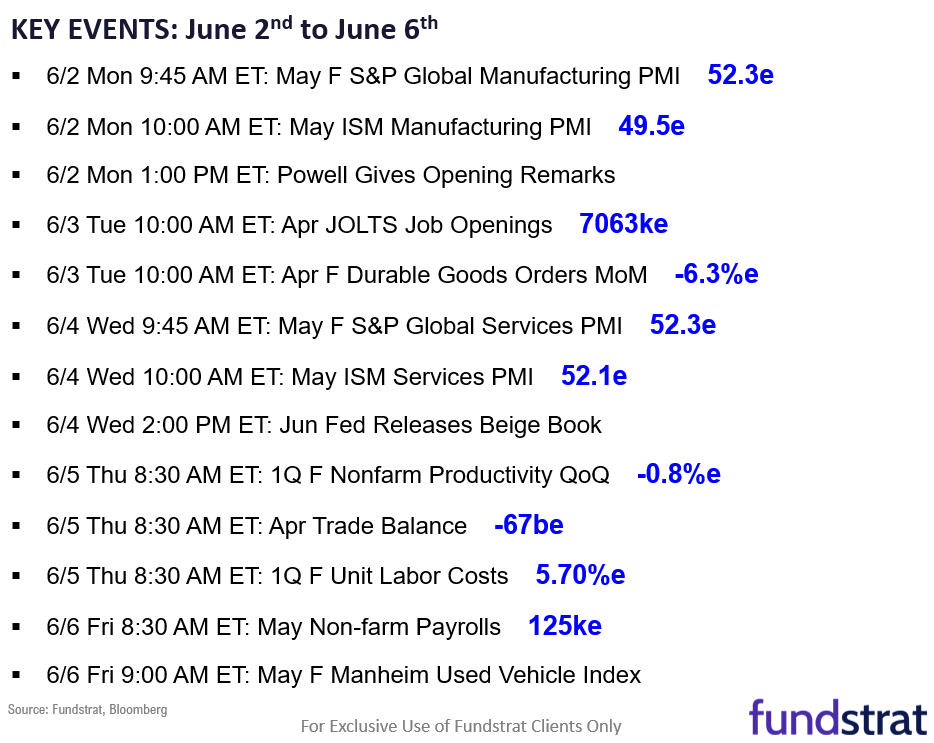 • 6/2 10:00 AM ET: May ISM Manufacturing PMI