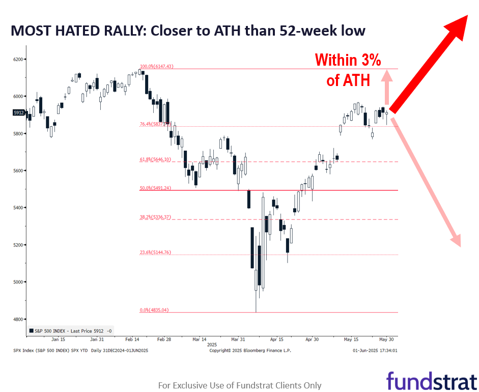 This still remains the “most hated” V-shaped stock rally. We view Bitcoin as a leading indicator and thus, we expect stocks to reattain all time highs, which Bitcoin achieved last week. We see S&P 500 reaching 6,600 by year-end.