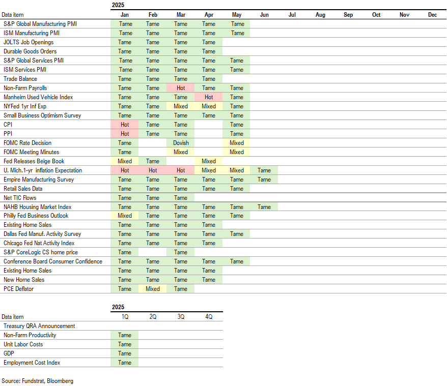 6/2 9:45 AM ET: May F S&P Global Manufacturing PMITame6/2 10:00 AM ET: May ISM Manufacturing PMITame6/3 10:00 AM ET: Apr JOLTS Job OpeningsTame6/3 10:00 AM ET: Apr F Durable Goods Orders MoMTame6/4 9:45 AM ET: May F S&P Global Services PMITame6/4 10:00 AM ET: May ISM Services PMITame6/4 2:00 PM ET: Jan Fed Releases Beige BookMixed6/5 8:30 AM ET: 1Q F Unit Labor CostsTame6/5 8:30 AM ET: 1Q F Nonfarm Productivity QoQTame6/5 8:30 AM ET: Apr Trade BalanceTame6/6 8:30 AM ET: May Non-farm PayrollsTame6/6 9:00 AM ET: May F Manheim Used Vehicle IndexTame6/9 11:00 AM ET: May NYFed 1yr Inf ExpTame6/10 6:00 AM ET: May Small Business Optimism SurveyTame6/11 8:30 AM ET: May Core CPI MoMTame- 6