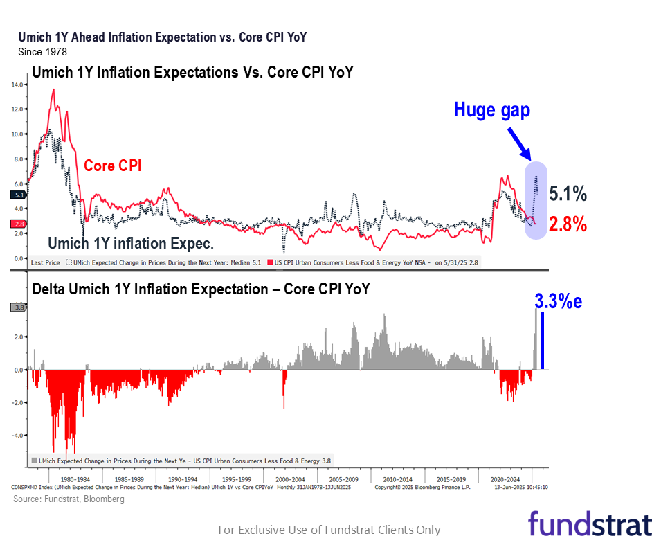 - So we think Fed will have to acknowledge this. And we know there is a lot of partisan bias in the inflation consumer surveys. So markets likely realize Fed will have to relent eventually and return to a dovish bias.