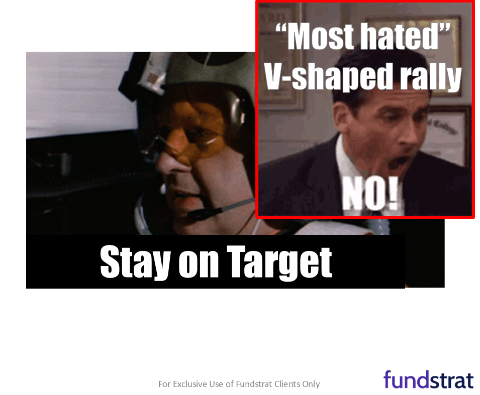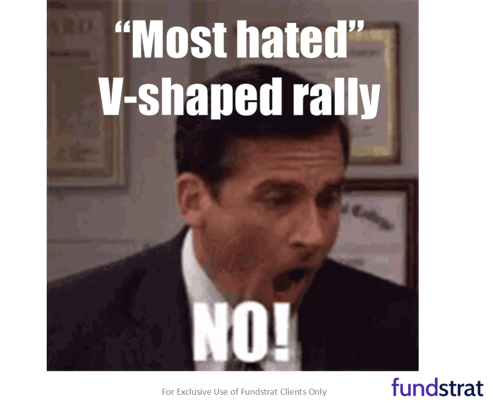 This still remains the “most hated” V-shaped stock rally. We view Bitcoin as a leading indicator and thus, we expect stocks to reattain all time highs, which Bitcoin achieved last week. We see S&P 500 reaching 6,600 by year-end.