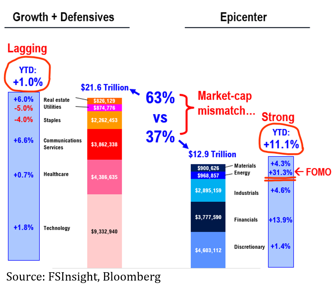 This is why we are still very bullish on ‘Epicenter’ and think you should be tilting exposure away from ‘Growth’ and toward the 37% of the market that has been neglected because of uncertainty and commercial interruption. When we examine the data from the latest BofA Global Fund Manager Survey it supports our thesis. Institutions are severely underweight a sector that has been significantly outperforming YTD.