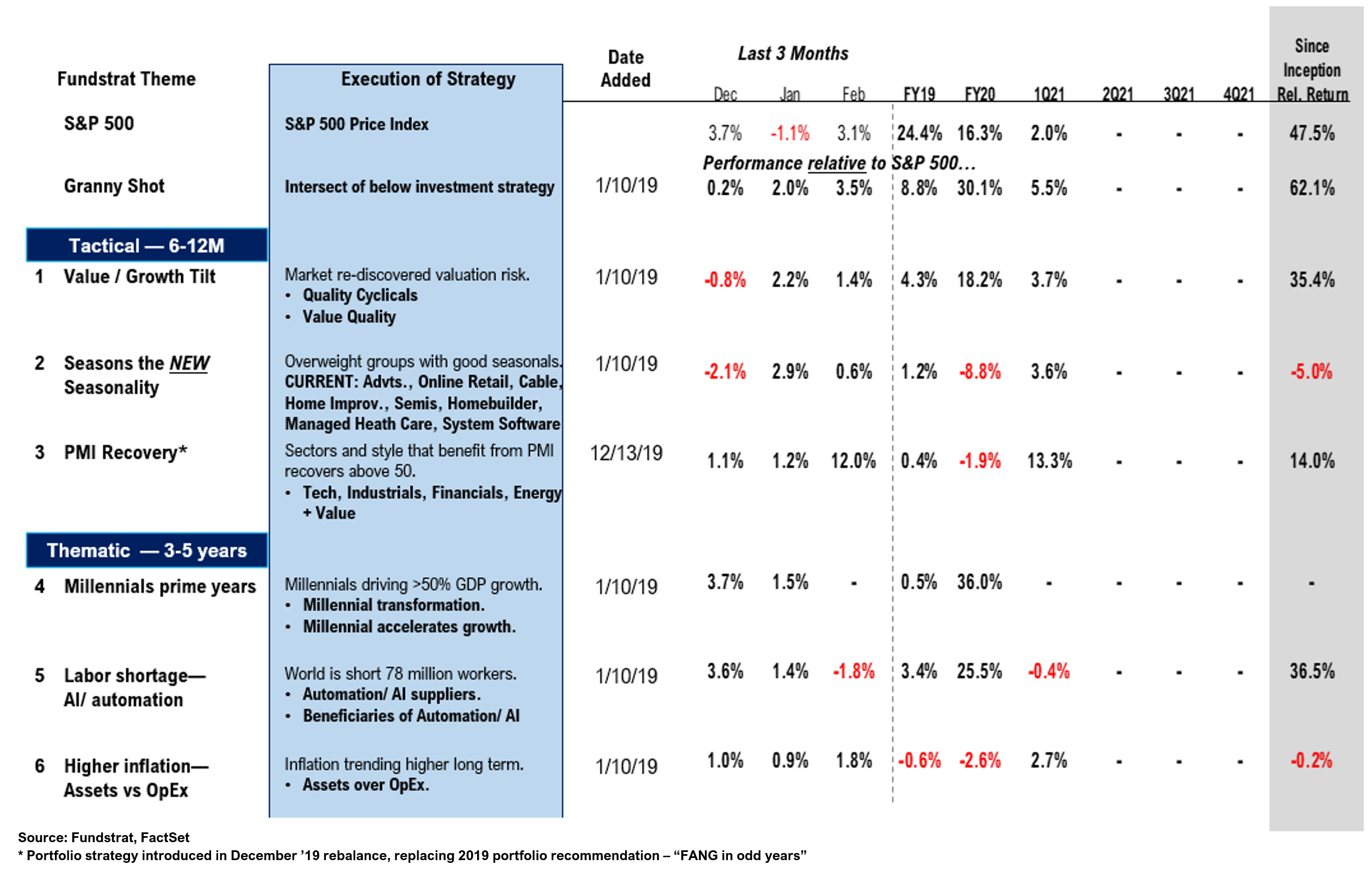 Figure: Fundstrat Portfolio Strategy Summary – Relative to S&P 500