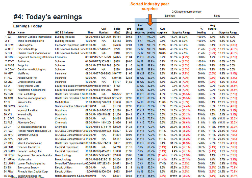 • Of the 348 companies that have reported so far (70% of the S&P 500), overall results are beating estimates by a median of 8%. And 78% of those reporting are beating estimates.