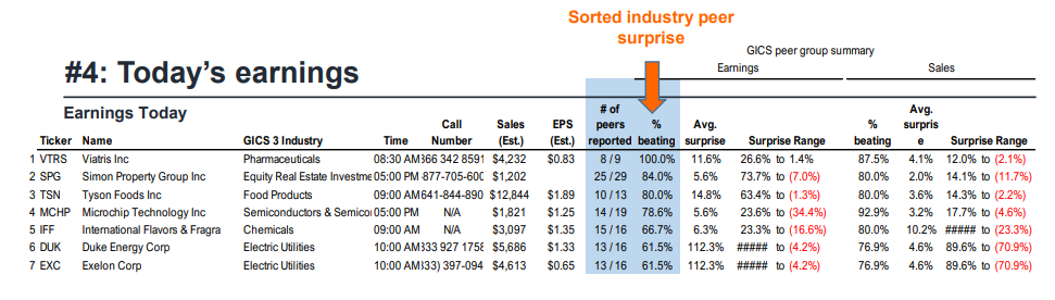 • On the top line, overall results are beating estimates by a median of 5%. And 72% of those reporting are beating estimates.