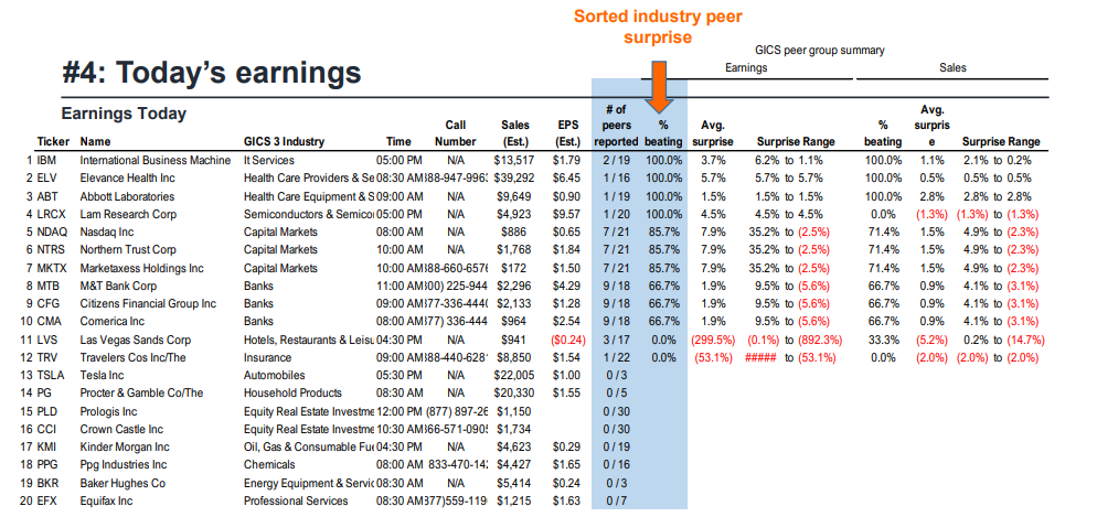 • Of the 46 companies that have reported so far (9% of the S&P 500), overall earnings results are beating estimates by a median of 5%. And 70% of those reporting are beating estimates.