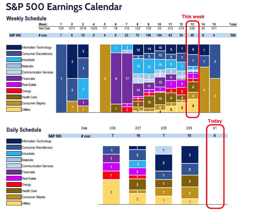 • 40 companies are reporting this week.