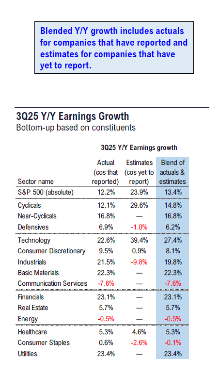 • On the top line, overall results are beating estimates by a median of 3% and missing by a median of -3%, and 76% of those reporting are beating estimates.