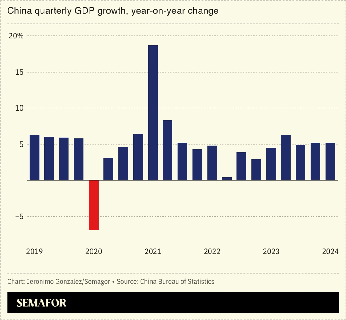 Growth with worries. China reported 1Q 2024 GDP rose 5.6% YoY, beating analyst expectations of 4.6%. The data released by China’s National Bureau of Statistics shows the country meeting its stated growth targets of around 5%. Yet behind the sanguine number are some worrying ones: Industrial output for March grew 4.5% YoY, below the 6% expected by economists. Retail sales also missed expectations, disappointing those who hoped for reinvigorated consumer demand. It grew 3.1% YoY versus 4.6% expectations. Meanwhile, new-home prices accelerated their decline as well, falling 2.65% YoY in March (compared to 1.9% YoY in February.) Much of the growth in China’s economy last quarter was attributed to export volume, though European port operators, clogged as they are with shipments of Chinese EVs, might have something to say about that.