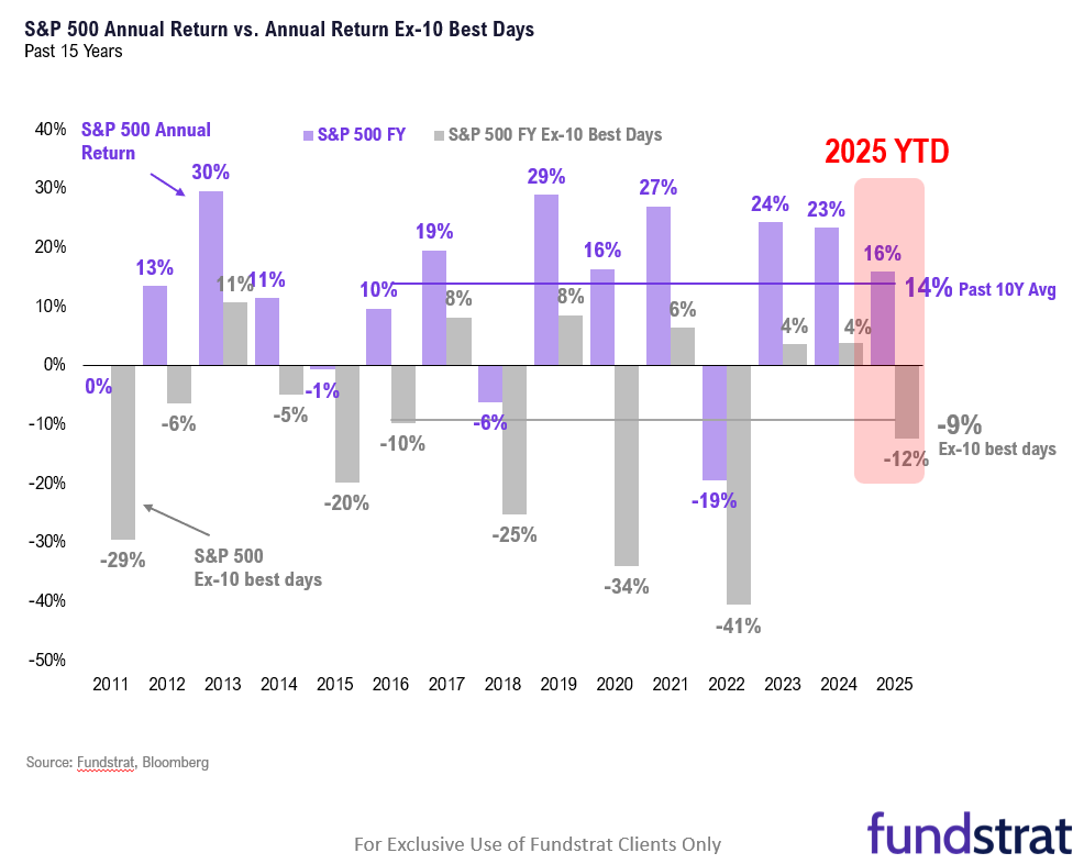 We believe the bearish sentiment that we have seen for much of 2025 reflects the fact that many investors sold at the tariff lows and missed out on many of the 10 best days. By the way, many of the 10 best days happen in the final weeks of the year.