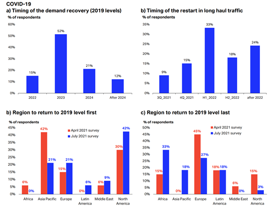 Attitudes have shifted from favoring Asia leading the air-travel recovery to North America leading it in industry surveys. Despite burgeoning demand for leisure travel, there are still many complex dynamics affecting the behavior of airline management. Most airlines have had to take dilutive action and increase leverage to survive the unprecedented crisis.