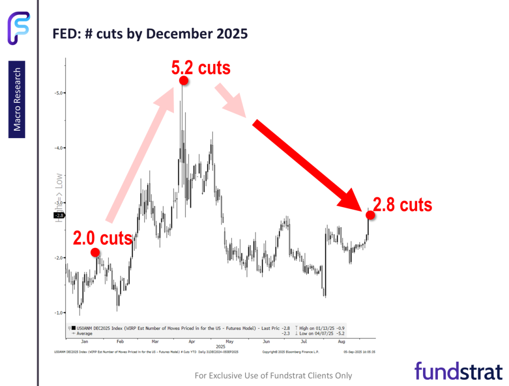 Fed Governor Chris Waller showed his inclination toward cutting rates earlier this week as well, which Lee highlighted. Waller said, “I think we need to start cutting rates at the next meeting and then we don’t have to go in a locked sequence of steps. We can kind of see where things are going because people are still worried about tariff inflation. I’m not, but everybody else is."