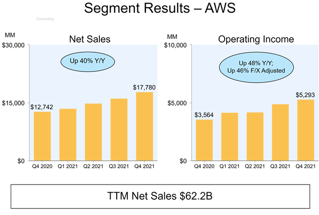 In addition, the company nearly doubled net income YoY. AWS had its best quarter ever and grew at a rate of 40% YoY. This is notable because this high-margin, high-growth segment is accretive to earnings compared to other lower-margin segments. Many had expected that AMZN’s high-growth advertising segment would be negatively affected after the dismal results from Meta/Facebook. However, this area strongly outperformed expectations as well.