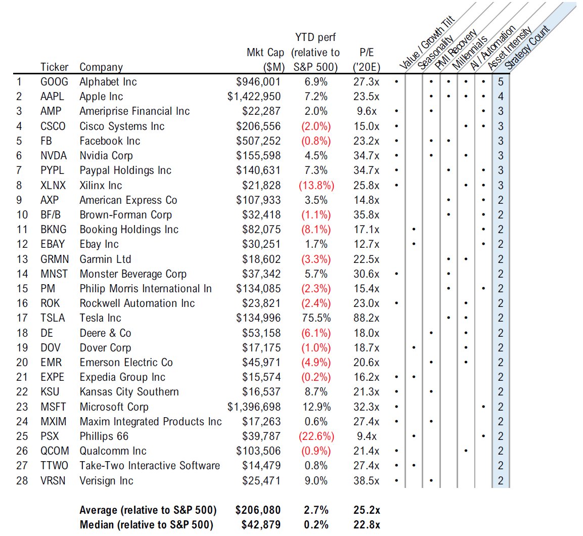 Below we’ve highlighted stocks that we recommend across at least two of our investment strategies for 2020. These companies could benefit from multiple themes and secular tailwinds – clear picks in our view for the first half of 2020.
