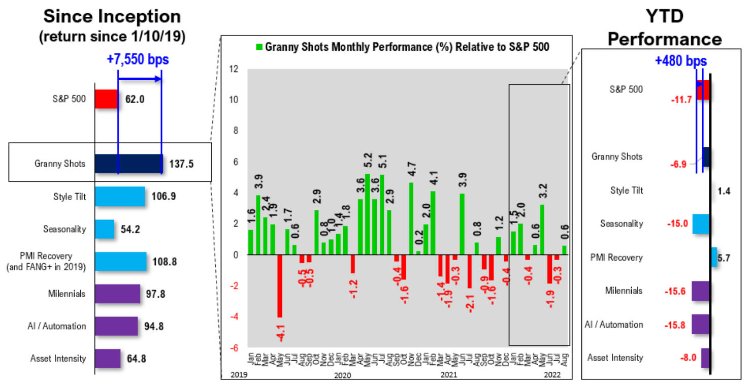 The stocks in the Granny Shots portfolio collectively outperformed the S&P 500 by 7,550 bps since its inception (S&P 500 is up 62.0% during the same period).