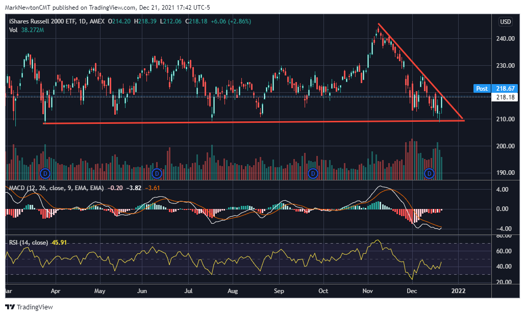 That’s an astoundingly low number considering that the S&P is so close to new high territory. This directly explains how the broader market has indeed suffered a bit more damage when excluding the Large-Cap Technology stocks since mid-November. Furthermore, many who are involved with Industrials, Financials, Energy, Comm. Svcs, or Discretionary of late have suffered much greater underperformance if they haven’t been involved with AAPL, MSFT, GOOGL and other large-cap Technology and Discretionary names.