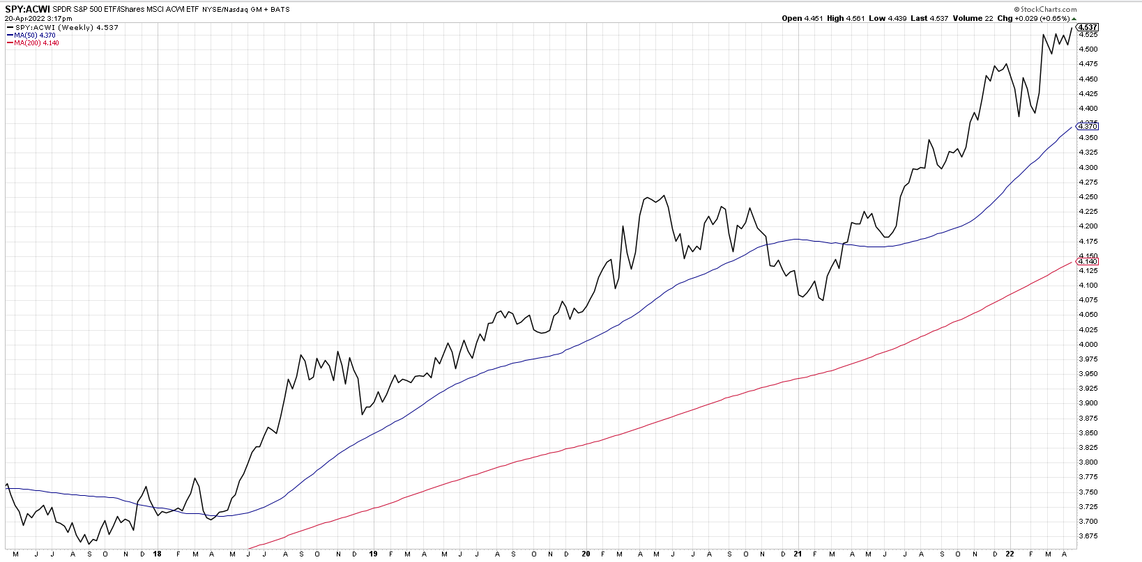 - US vs ACWI continuing to trend higher; So, while US is weak, it’s still relatively strong