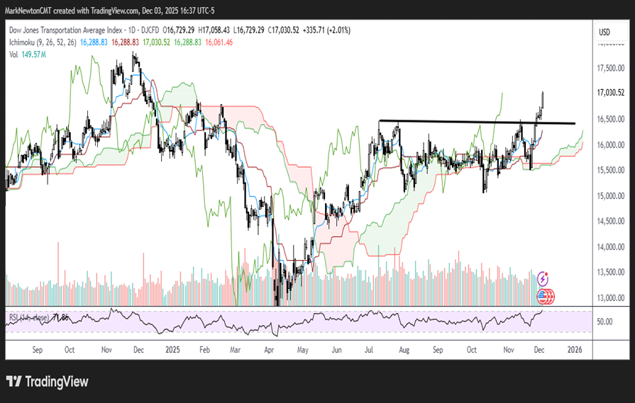 Transportation stocks continue to show strong gains following the recent breakout of Summer 2025 peaks