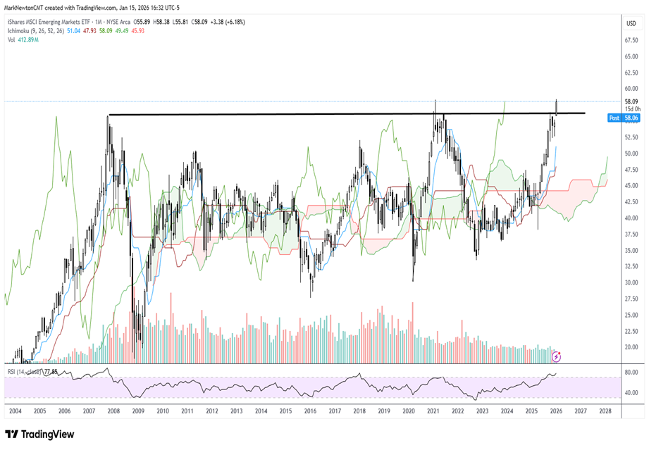 Emerging markets ETF looks set to potentially record a new all-time weekly and monthly high close this month